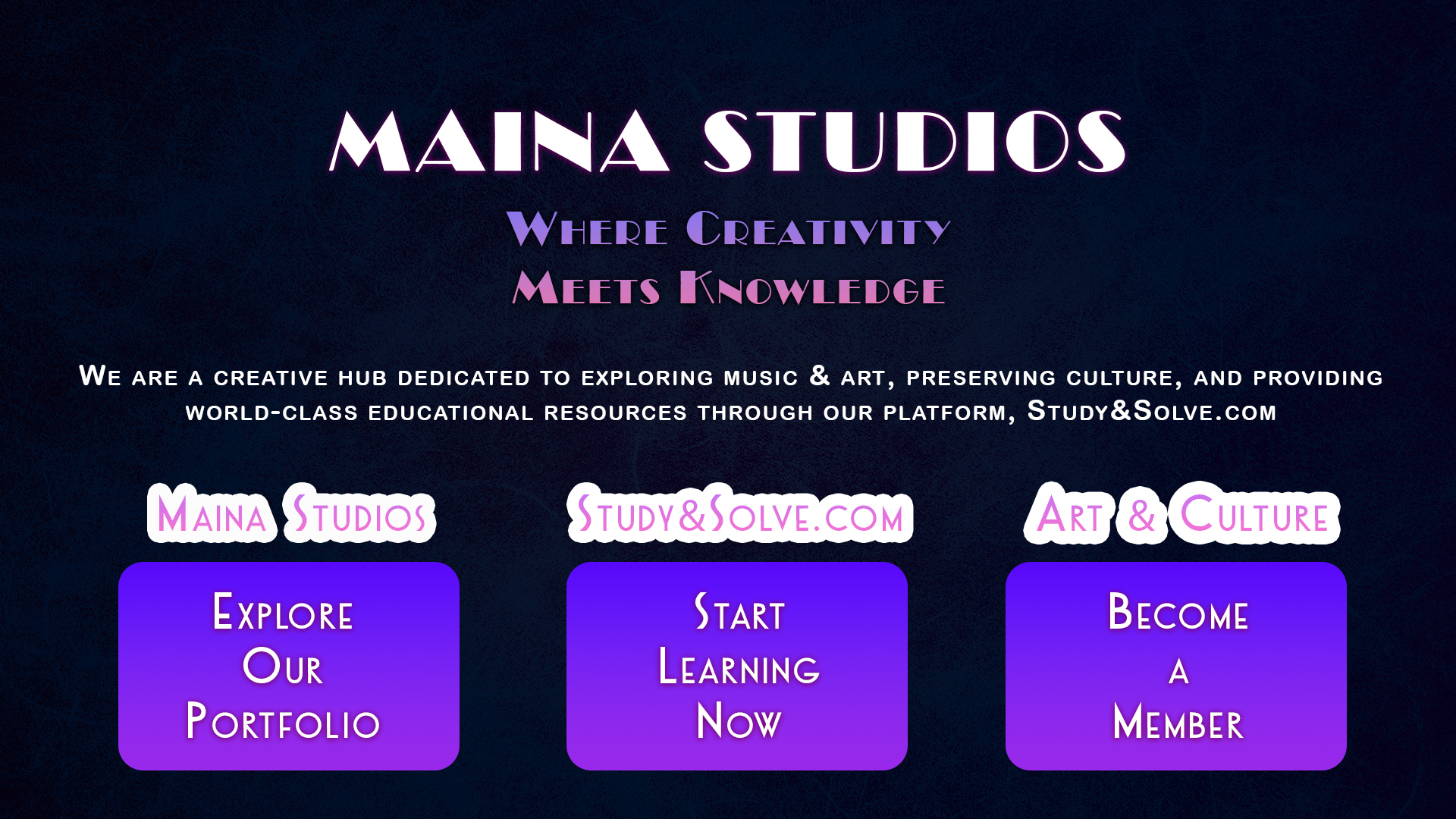 While StudyAndSolve.com focuses on empowering students through learning, Maina Studios focuses on creativity, culture, and multimedia excellence. Together, they form a unique combination of education + entertainment.
